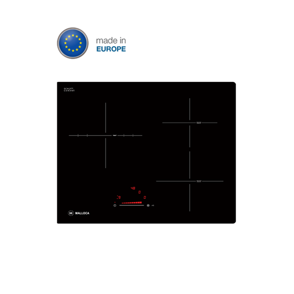 Bếp điện từ 3 vùng nấu Malloca MIR 593 / 2 Vùng từ 1 vùng điện, nhập khẩu Tây Ban Nha, kính Schott Ceran