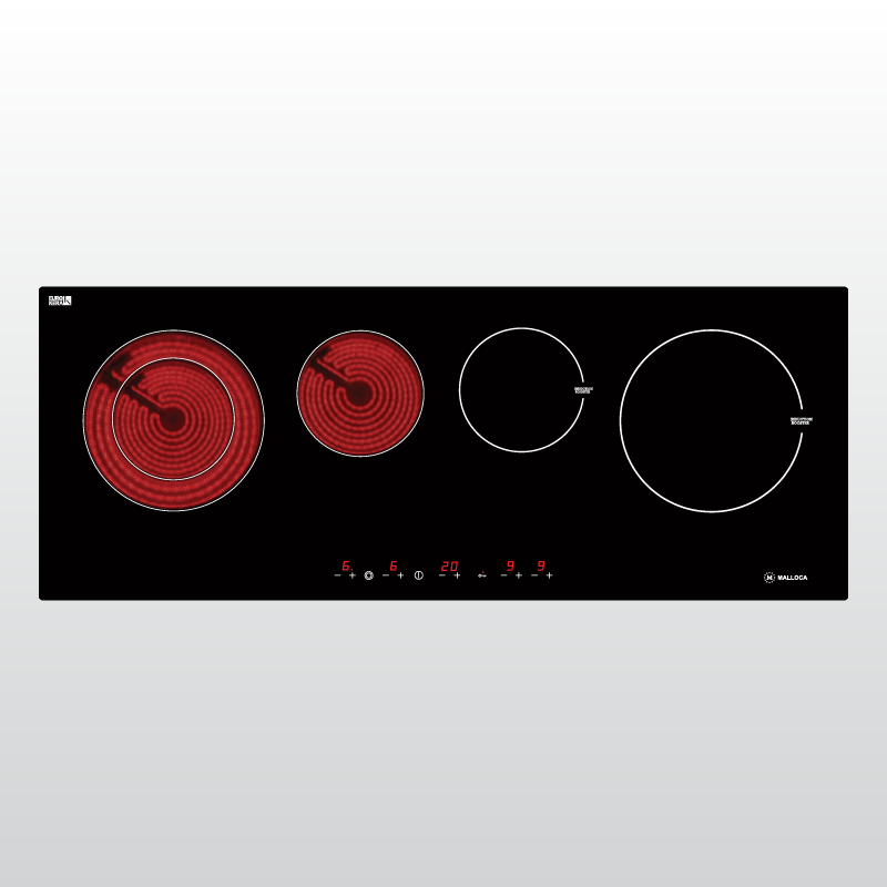 Bếp điện từ 4 vùng nấu Malloca MH-04IR / 2 Vùng từ 2 vùng điện, kính Eurokera