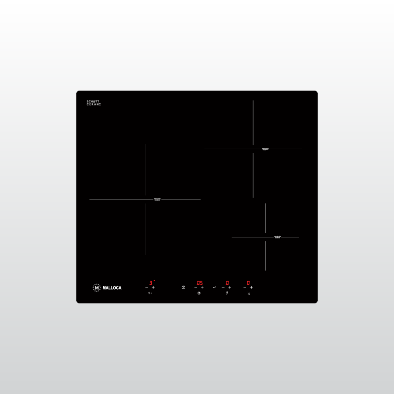 Bếp Malloca MI 593 BN trang bị 3 vùng nấu từ rộng rãi, cả 3 vùng đều có công suất Booster hỗ trợ nấu nhanh. Bên cạnh đó, bếp cũng được hoàn thiện với mặt kính Schott Ceran từ Đức, có khả năng chịu lực và chịu nhiệt tối ưu.