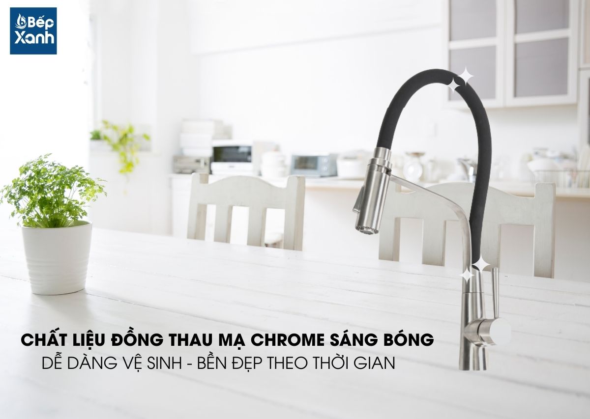 - Chất liệu đồng thau mạ chrome an toàn, sáng bóng.